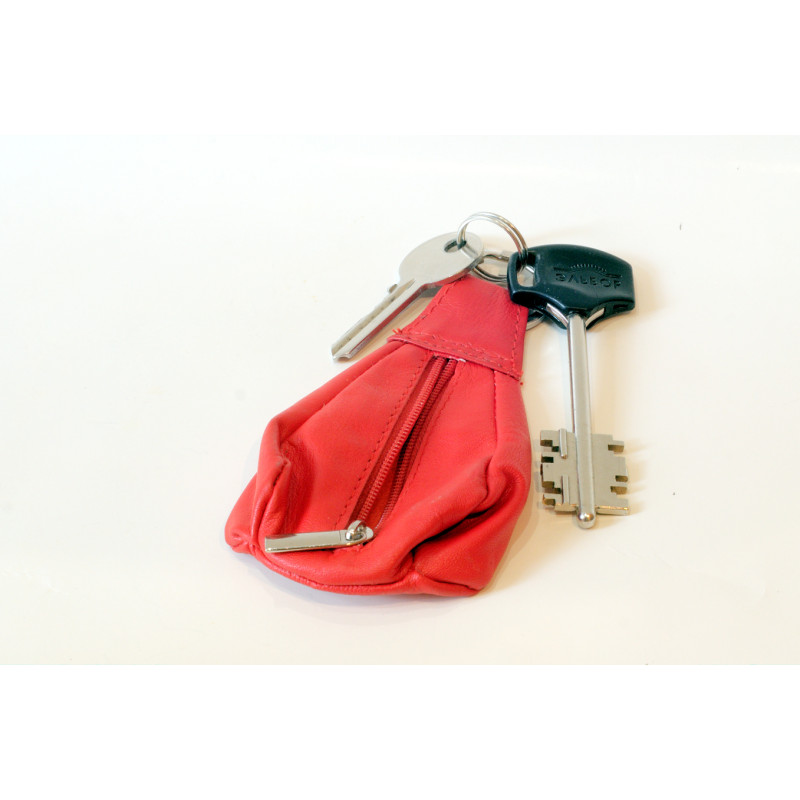 Ādas maciņš atslēgām, izgatavots maisiņa formā. maciņa ārpusē ir gredzens atslēgām.