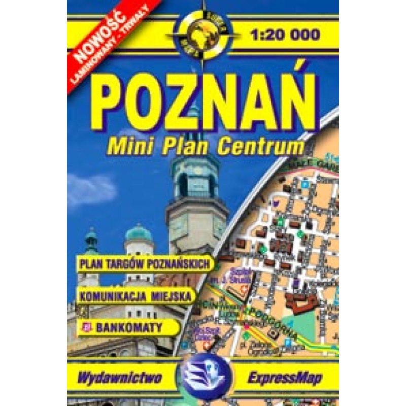 miniatūra, divpusēja, ērti lietojam, laminēta poznaņas karte mērogā 1 : 20 000, viegli